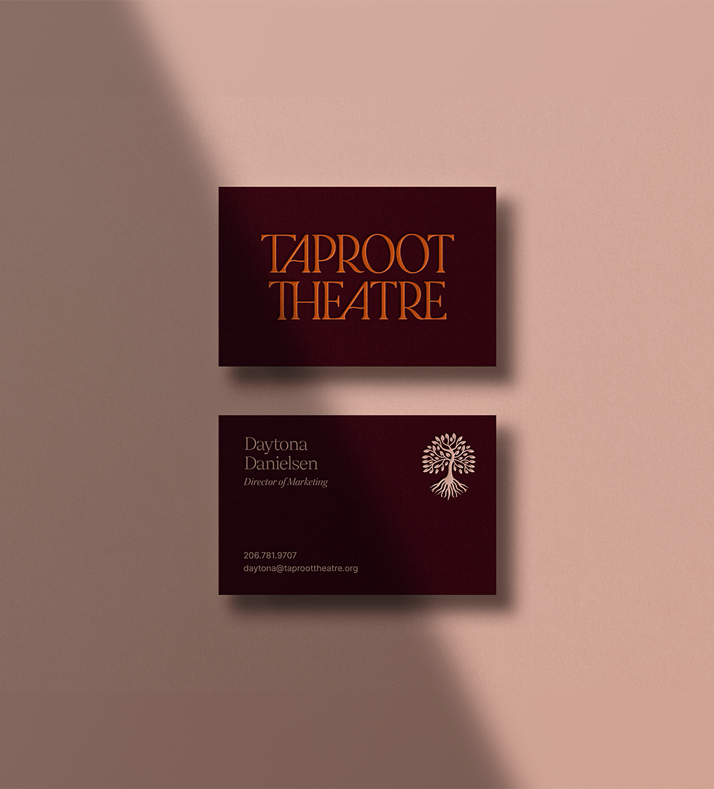 A rich legacy of storytelling deserves a rich palette. Deep, earthy hues and vibrant pops of teal and orange speak to the kind of performances Taproot Theatre promises: memorable, uplifting, and deeply rooted in the human experience.